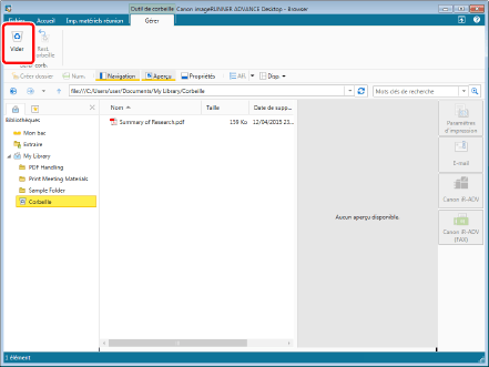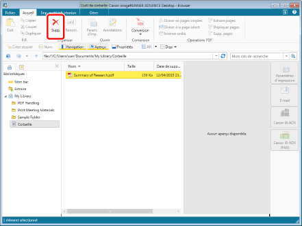 Il n'est pas possible d'utiliser la Corbeille pour une Bibliothèque Document Server ou une Bibliothèque SharePoint Server sans posséder les droits de modification ou une autorisation supérieure.