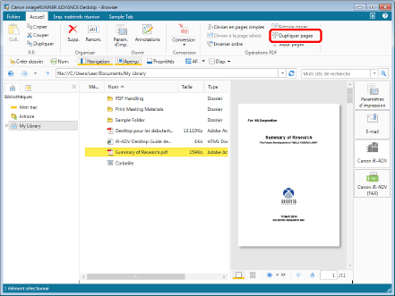 Si plusieurs pages ont été sélectionnées avec l'affichage des miniatures, le document PDF dupliqué est enregistré avec la mention "_numéro de page de la première page sélectionnée" après le nom du document.
