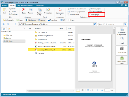 Si le document original est un document PDF avec des Extensions Reader, la fonction Reader Extensions est supprimée du document PDF original après la suppression.