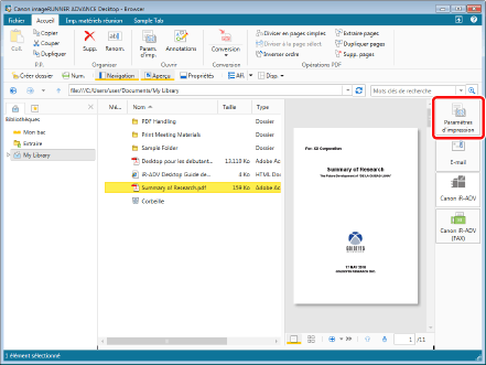 (Param. d'imp.) qui s'affiche dans la barre d'outilsSi les boutons ne s'affichent pas dans la barre d'outils, voir la section suivante pour savoir comment les afficher.