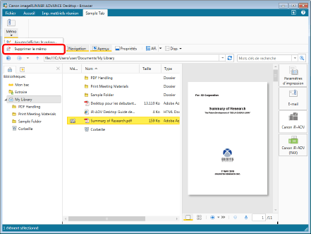 Cette opération peut également être effectuée avec les boutons d'outils de la barre d'outils. Si les boutons d'outils ne sont pas affichés sur la barre d'outils de Desktop Browser, consulter les rubriques suivantes pour les afficher.