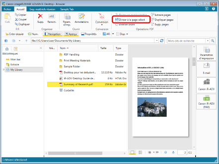 Le document PDF est divisé avant la page affichée/sélectionnée.
