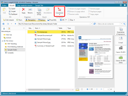 (Conversion) dans le ruban et sélectionner [Convertir en document PDF].