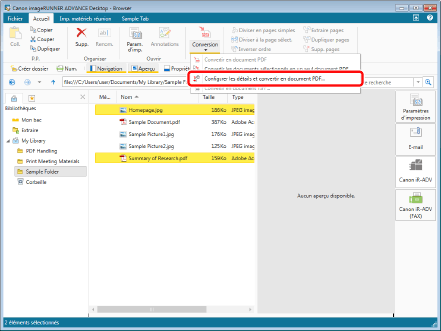 (Conversion) sur le ruban, puis sélectionner [Configurer les détails et convertir en document PDF].