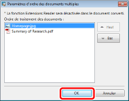 Si plusieurs documents sont sélectionnés : l'extension du nom du premier document devient ".pdf". Si le premier document est un PDF, "(2)" est ajouté à la fin du nom du document original.