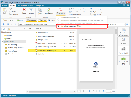 (Conversion) sur le ruban, puis sélectionner [Convertir en document TIFF].