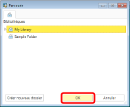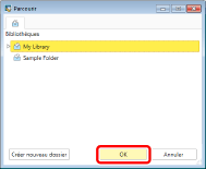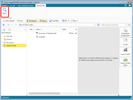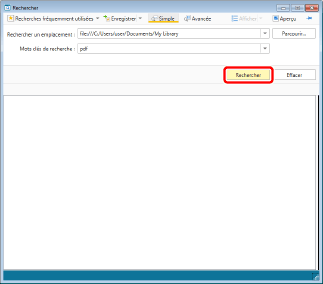 La recherche est effectuée dans tous les dossiers de la bibliothèque ou du dossier. En revanche, les noms des dossiers d'une Bibliothèque Document Server ne sont pas passés en revue lorsque des recherches sont effectuées (seuls les documents des dossiers sont concernés par la recherche). Pour effectuer des recherches sur les noms des dossiers dans une Bibliothèque Document Server, utiliser la fonction de recherche détaillée.