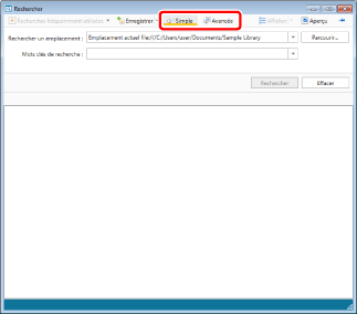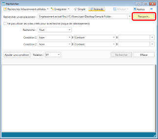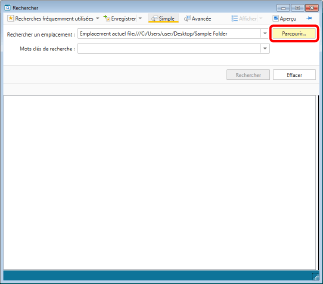 Le chemin d'accès de la bibliothèque ou du dossier cible de la recherche s'affiche dans [Rechercher un emplacement] dans l'Écran de recherche.