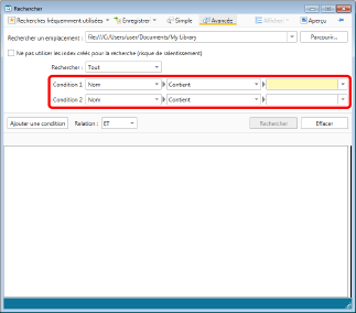 Lorsque [ET] est sélectionné, les résultats de la recherche qui incluent toutes les conditions de recherche définies dans [Condition] sont affichés.