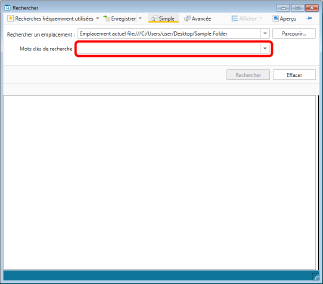 La barre de recherche simple et la liste déroulante [Mots clés de recherche] dans l'Écran de recherche peuvent enregistrer les 10 derniers mots-clés de recherche au maximum.