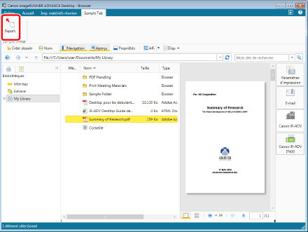 Si vous souhaitez exporter un document PDF configuré avec un mot de passe, vous devez saisir le mot de passe lors de l'exportation.