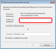 Déplacer la boîte de dialogue [Saisir le nom du document à envoyer].