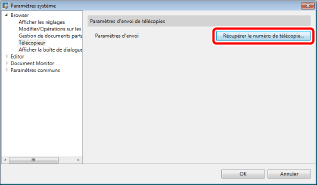 La boîte de dialogue [Récupérer le numéro de télécopie] s'affiche.