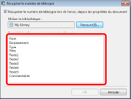 Les numéros de télécopie ne peuvent être automatiquement récupérés que depuis des documents stockés dans une bibliothèque que vous avez sélectionnée dans la boîte de dialogue [Récupérer le numéro de télécopie]. Les numéros de télécopie ne peuvent pas être récupérés depuis des documents d'autres bibliothèques, même si les numéros de télécopie sont paramétrés dans leurs propriétés.
