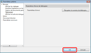 Cliquez sur [OK] pour fermer la boîte de dialogue [Récupérer le numéro de télécopie].