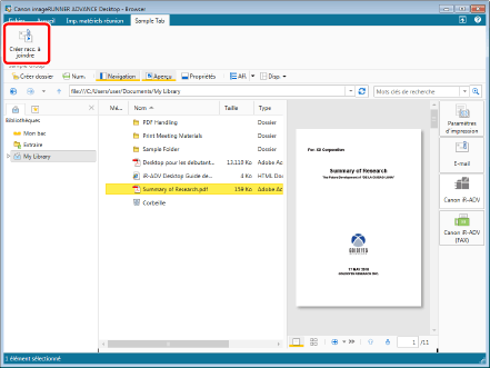 Il est également possible de convertir des documents enregistrés dans des bibliothèques en documents PDF et de les envoyer par courrier électronique. Pour plus d'informations, consulter la section suivante.