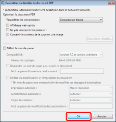 Les valeurs définies dans la boîte de dialogue [Paramètres de détaillés de document PDF] sont conservées.