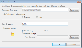 Si un bouton de sortie bac de destination est enregistré par glisser-déposer, [Opérations sur les documents] est paramétré sur [Déplacer] dans la boîte de dialogue [Paramètres de dossier].