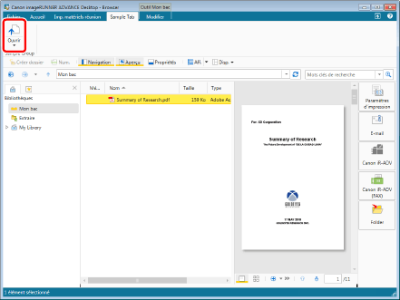 Le document envoyé au dossier de réception est transféré vers Mon bac. Le document reçu peut être ouvert à l'aide des procédures suivantes.