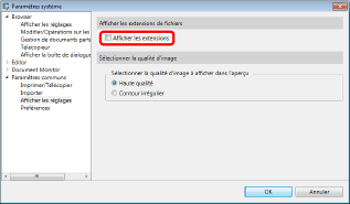 Pour modifier l'extension d'un document, modifier les paramètres de façon à ce que les extensions s'affichent de nouveau.
