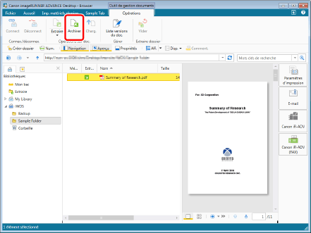Ou, cliquez avec le bouton droit de la souris, et sélectionnez [Archiver le document].