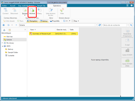 L'archivage d'un document extrait depuis une Bibliothèque Document Server ou une Bibliothèque SharePoint Server le réenregistre à son emplacement d'origine en tant que version la plus récente du document et le rend accessible aux autres utilisateurs.