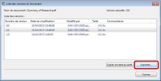 Il n'est pas possible d'afficher la boîte de dialogue [Liste des versions du document] pour plusieurs documents.