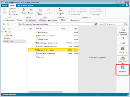 Il est possible de sélectionner plusieurs documents ou un dossier dans la Fenêtre de navigation.