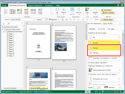 Pour plus d'informations sur la définition de l'orientation du papier en sortie chapitre par chapitre, consulter la rubrique suivante :