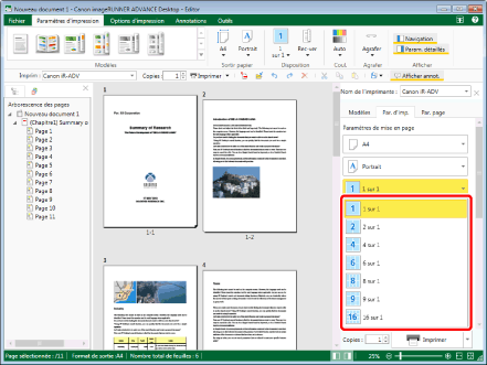 Si [Auto (Format)] est sélectionné dans les paramètres de format du papier en sortie, la mise en page est définie sur [1 sur 1].