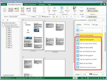 Si une option autre que [2 sur 1] a été sélectionnée pour la mise en page, il est possible de sélectionner les ordres suivants dans la liste déroulante.