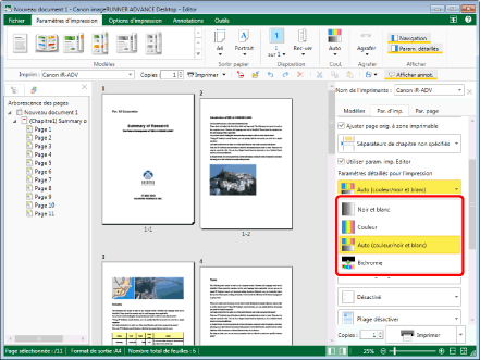 Si l'imprimante Canon sélectionnée dans [Imprim] ne prend pas en charge l'impression en couleur, le mode couleur ne peut pas être spécifié.
