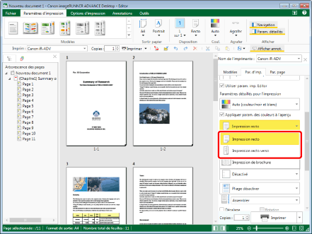 Quand le mode recto-verso est configuré pour le document en entier, il est possible de configurer l'impression en mode recto pour des chapitres spécifiques. Pour plus d'informations sur la configuration de l'impression en mode recto pour un chapitre, consulter la section suivante :