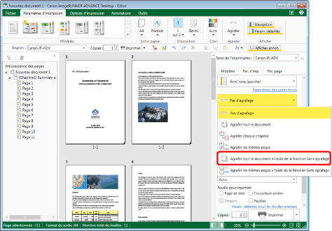 Cette fonction ne peut être utilisée que lors de la sélection d'une imprimante Canon lorsque la case [Utiliser param. imp. Editor] est cochée dans l'onglet [Par. d'imp.] de la Fenêtre Détails, de la commande du ruban ou du bouton d'outil.