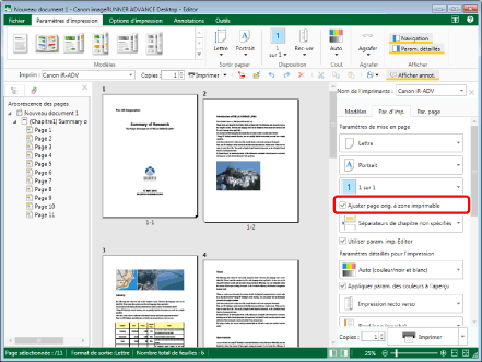 En cas d'impression d'un document sans cocher la case [Ajuster page orig. à zone imprimable], la zone située au-delà de la zone d'impression valide de la page originale ne peut pas être imprimée. En outre, les annotations attachées à la zone située au-delà de la zone d'impression valide risquent de ne pas être imprimées correctement. Dans ce cas, un message d'avertissement s'affiche lors de l'impression ou de l'exportation vers un fichier PDF.