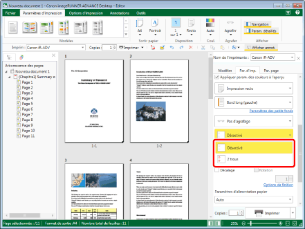 Cette fonction ne peut être utilisée que lors de la sélection d'une imprimante Canon lorsque la case [Utiliser param. imp. Editor] est cochée dans l'onglet [Par. d'imp.] de la Fenêtre Détails, de la commande du ruban ou du bouton d'outil.