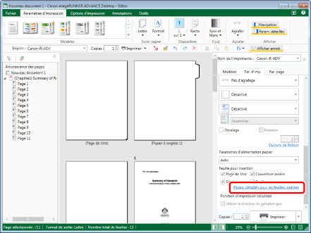 (Pour insert.) dans le ruban et sélectionner ensuite [Paramètres détaillés pour les feuilles insérées].