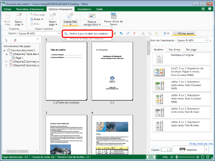 Si le nombre de pages est réduit lors de la mise à jour de la table des matières, les champs de publipostage et les annotations spécifiés sur les pages concernées sont également supprimés.