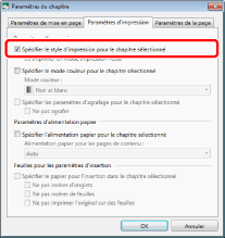 Pour plus d'informations sur l'annulation des paramètres définis chapitre par chapitre, veuillez consulter :