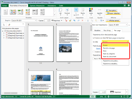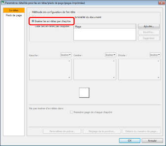 Si vous définissez l'en-tête/le pied de page chapitre par chapitre, vous ne pouvez pas sélectionner les éléments suivants.