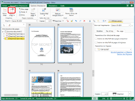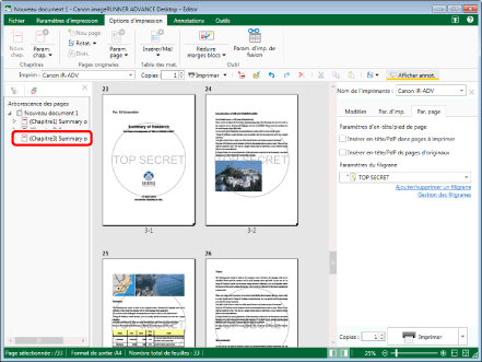 Lors de l'ajout de filigranes aux pages à imprimer, celles-ci sont différentes pour chaque chapitre dans le cas suivant :