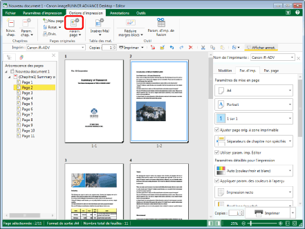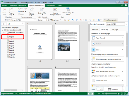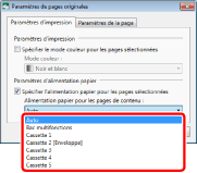 Il est également possible de cliquer avec le bouton droit de la souris sur la page dont les paramètres doivent être modifiés dans l'onglet [Arborescence des pages] de la Fenêtre de navigation et de sélectionner la source d'alimentation à définir dans [Alimentation papier pour les pages d'originaux].