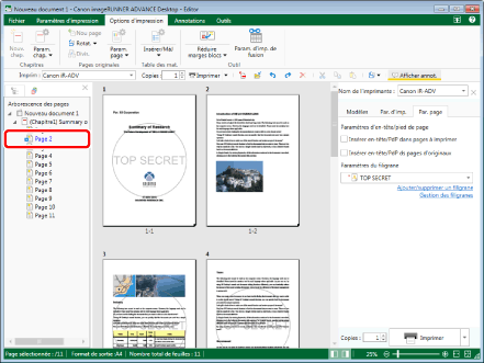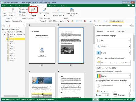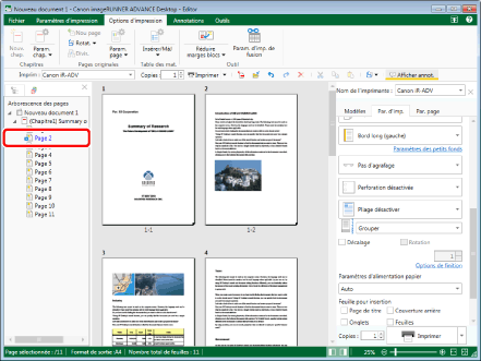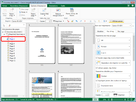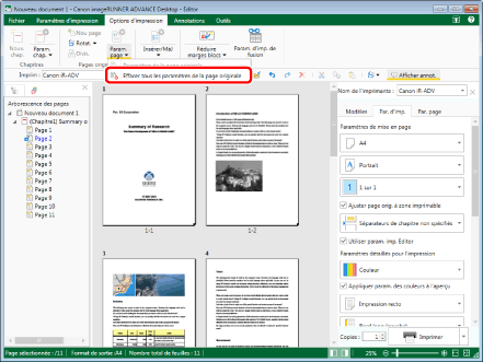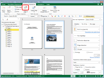 Il est également possible de cliquer avec le bouton droit de la souris sur la page dont les paramètres doivent être modifiés dans l'onglet [Arborescence des pages] de la Fenêtre de navigation et de sélectionner [Effacer les paramètres] sous [Alimentation papier pour les pages d'originaux].