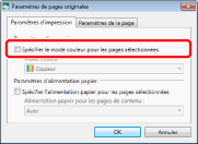 Il est également possible de cliquer avec le bouton droit de la souris sur la page dont les paramètres doivent être modifiés dans l'onglet [Arborescence des pages] de la Fenêtre de navigation et de sélectionner [Effacer les paramètres] sous [Mode couleur des pages d'originaux].