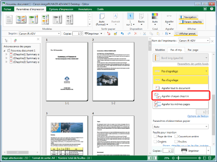(Agrafer) dans le ruban et sélectionner ensuite [Agrafer chaque chapitre].