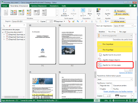 (Agrafer) dans le ruban et sélectionner ensuite [Agrafer les mêmes pages].