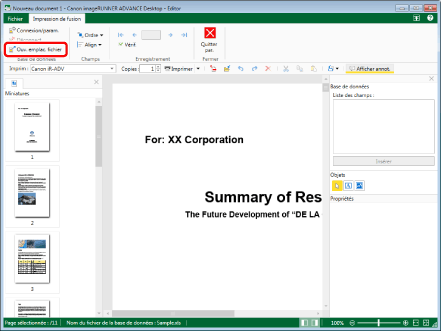 Lorsque le Mode Paramètres d'impression de publipostage est actif, il n'est pas possible de modifier une base de données connectée. Pour la modifier, il est alors nécessaire de se déconnecter de la base de données.