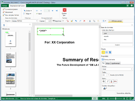 Il est possible de redimensionner les champs de publipostage insérés dans Desktop Editor.