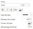 (Pol.) (Tlle pol.) (Gras) (Italic) (Souligné) (Barré) (Coul. pol.) (Style lgn) (Ép. ligne) (Coul. lgn) (Remp)Si les commandes ne s'affichent pas sur le ruban de Desktop Editor, suivre l'une des étapes indiquées ci-dessous pour les afficher.