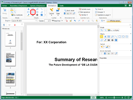 Cette opération peut également être effectuée avec les boutons d'outils de la barre d'outils. Si les boutons d'outils ne sont pas affichés sur la barre d'outils de Desktop Editor, consulter les rubriques suivantes pour les afficher.